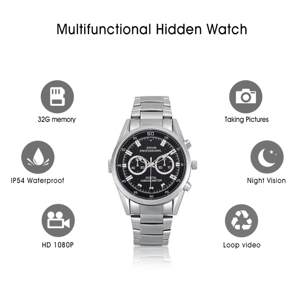 Full HD Hidden Watch Video Camera Smart Wrist Waterproof Watch.